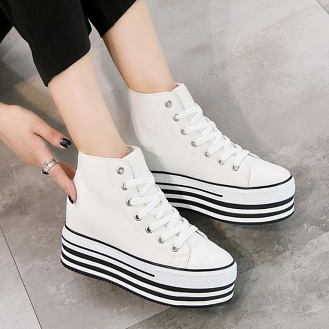 スニーカー 厚底スニーカー レディース ハイカットスニーカー 厚底 白 黒 紐靴 韓国 プラットフォーム カジュアル シンプル おしゃれ 大人可愛い Ssg0097 Leap リープ 通販 Yahoo ショッピング